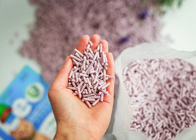 naturalny żwirek tofu jest wolny od gliny, substancji chemicznych i toksyn, bez perfum i sztucznych barwników.